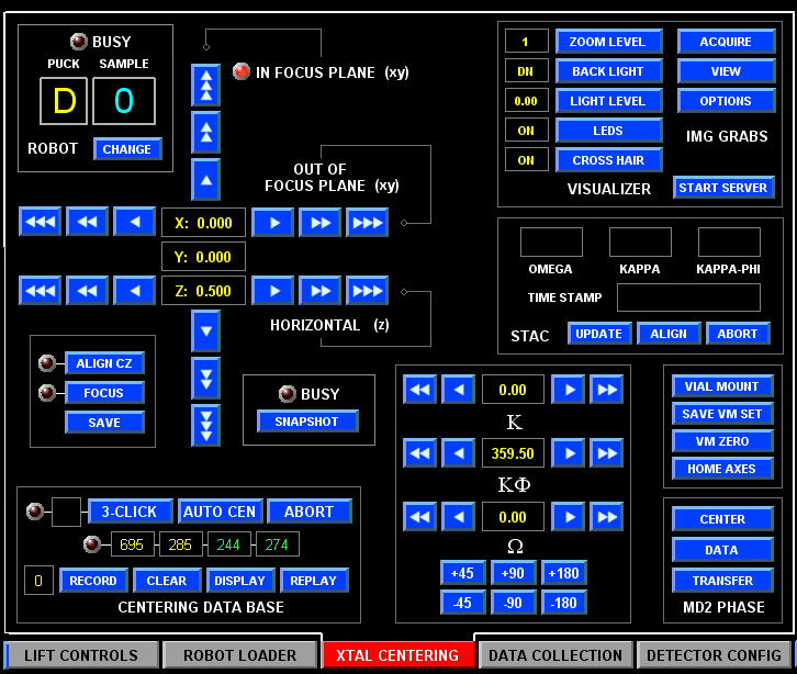 XTAL CENTERING is the extension of the centering mode of MD2 software for use with mini-kappa goniometer and several robot manipulation tasks.