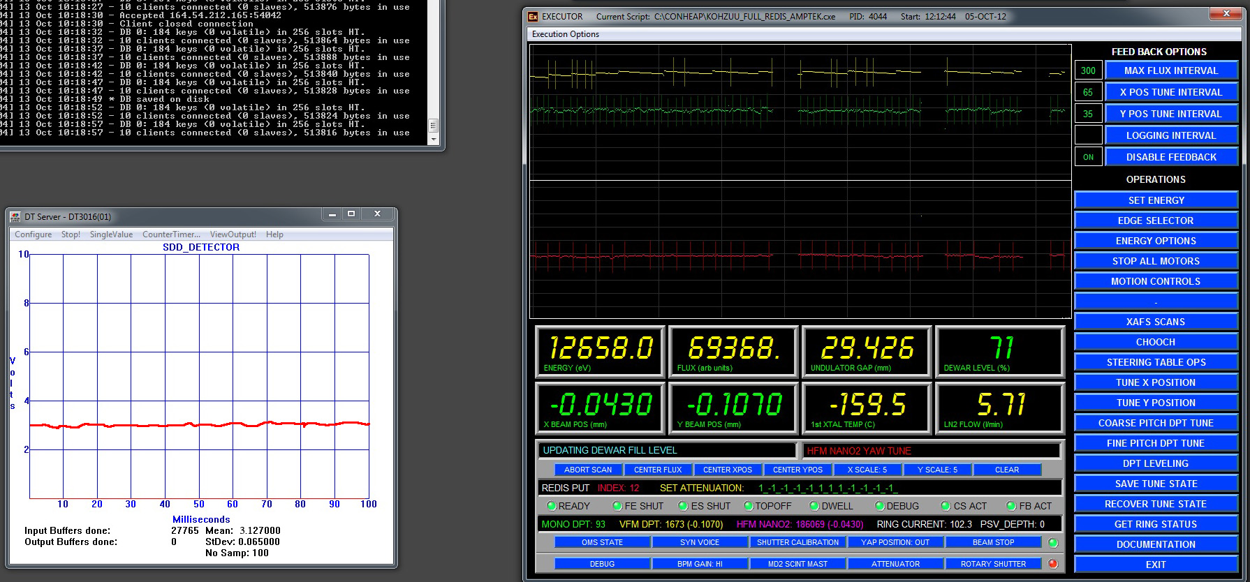 Figure 13. The view of the right most monitor of the beamline computer, illustrating proper flux for EXAFS