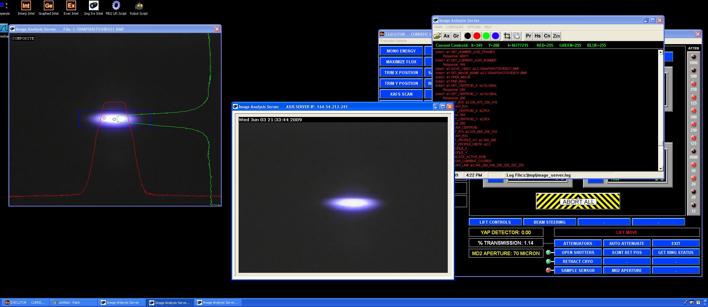 Figure 8. User workspace on auxiliary computer during autoalignment of the beam.