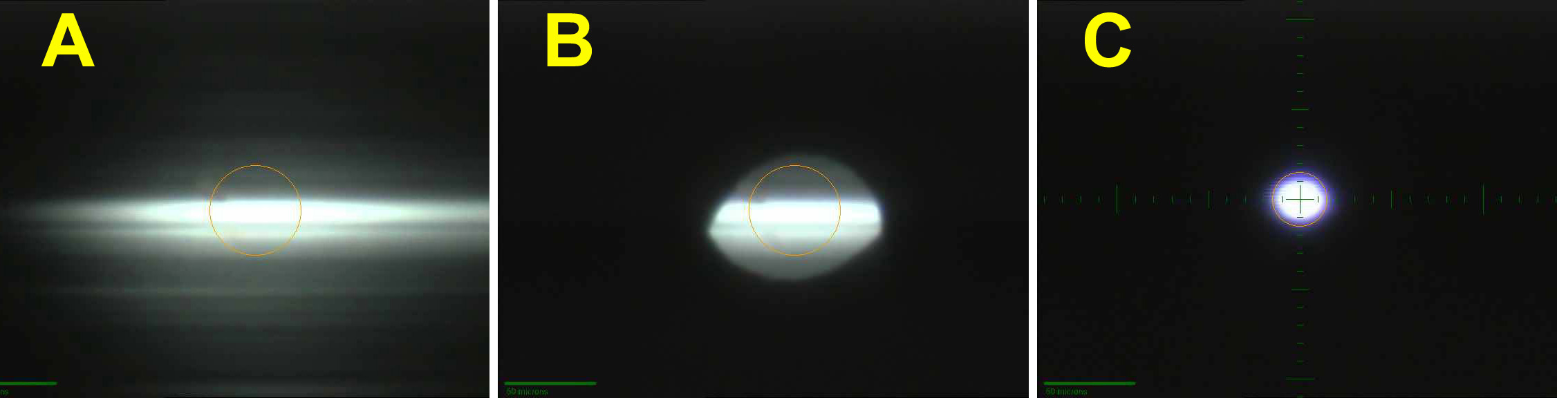 - Open the fast shutter and watch the beam coming. If it’s too bright, decrease the flux.