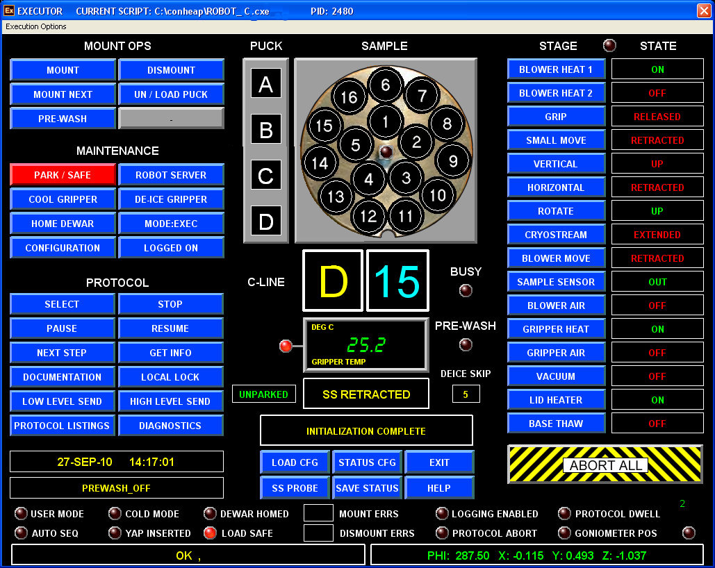 Now all robot operation should be done OUTSIDE the hutch, using the robot script running on auxiliary computer.